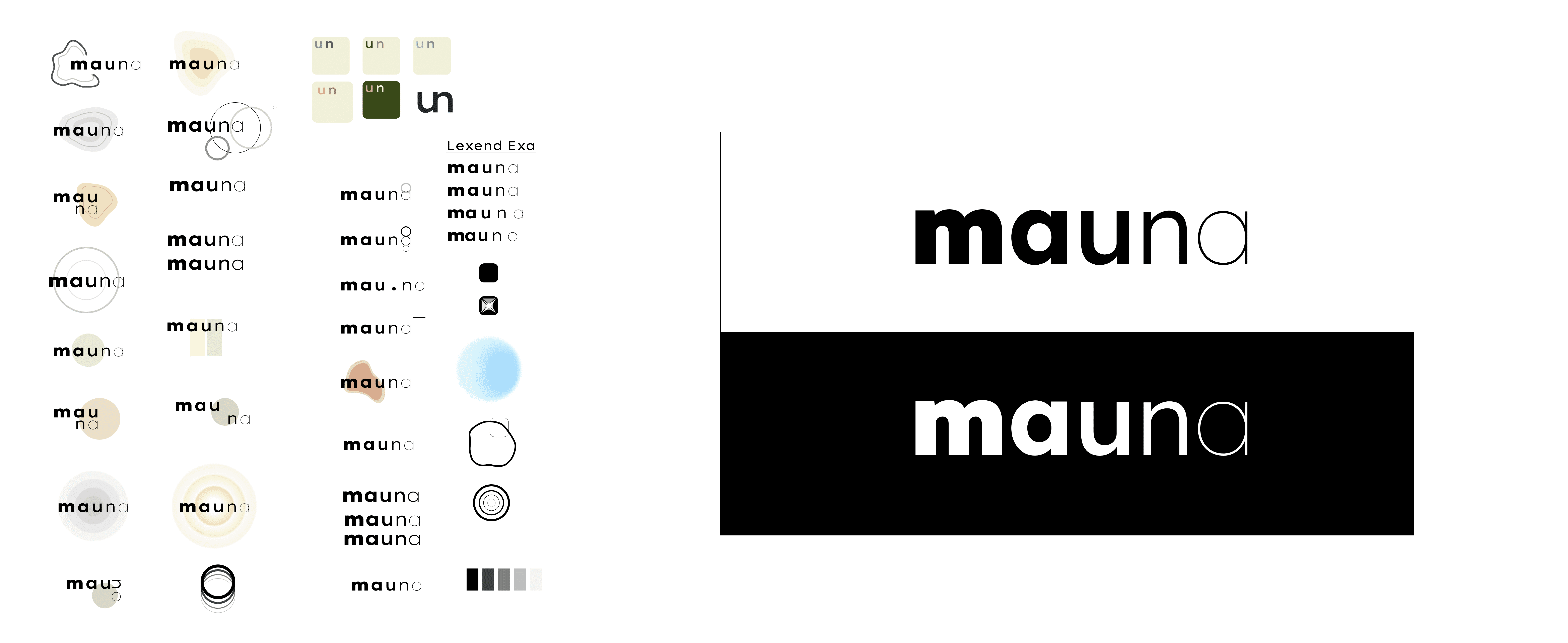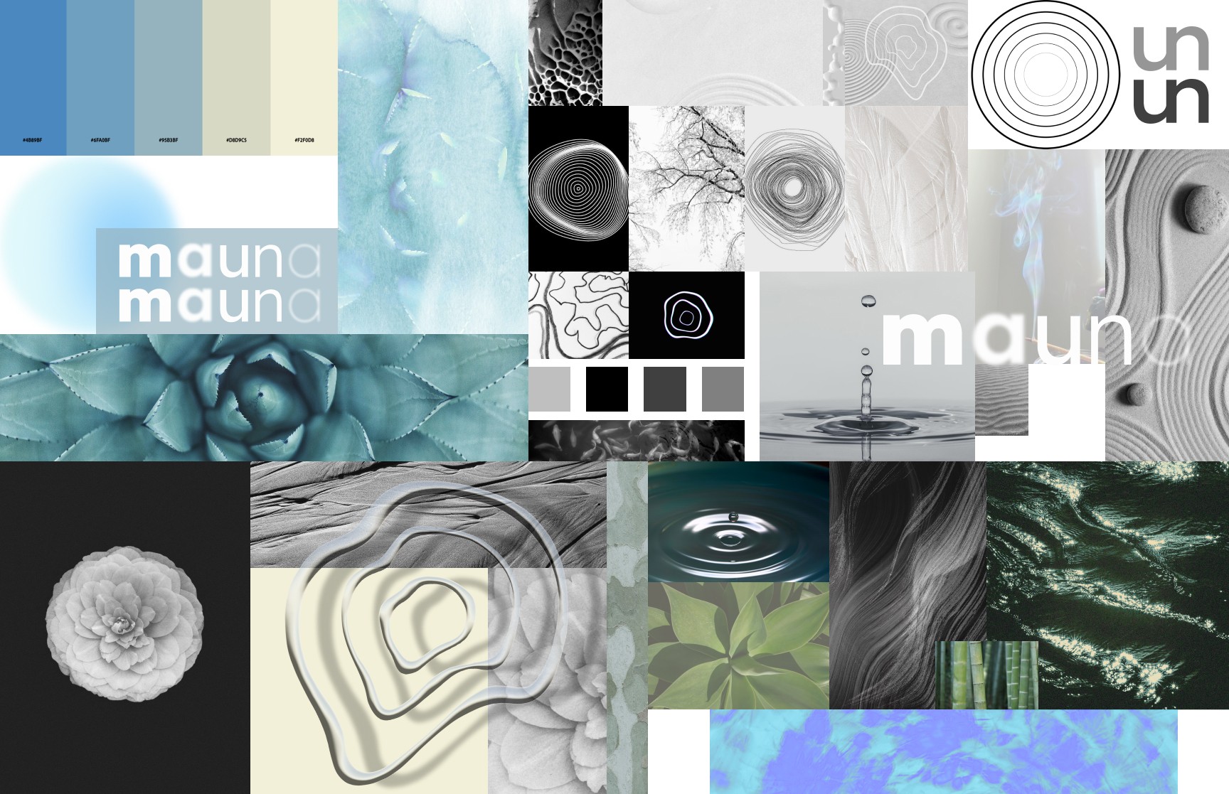 El logotipo, formado por círculos concéntricos, simboliza el viaje emocional hacia el interior y la conexión con uno mismo, reforzando la idea de Mauna como un espacio de pausa y desconexión dentro del entorno digital.